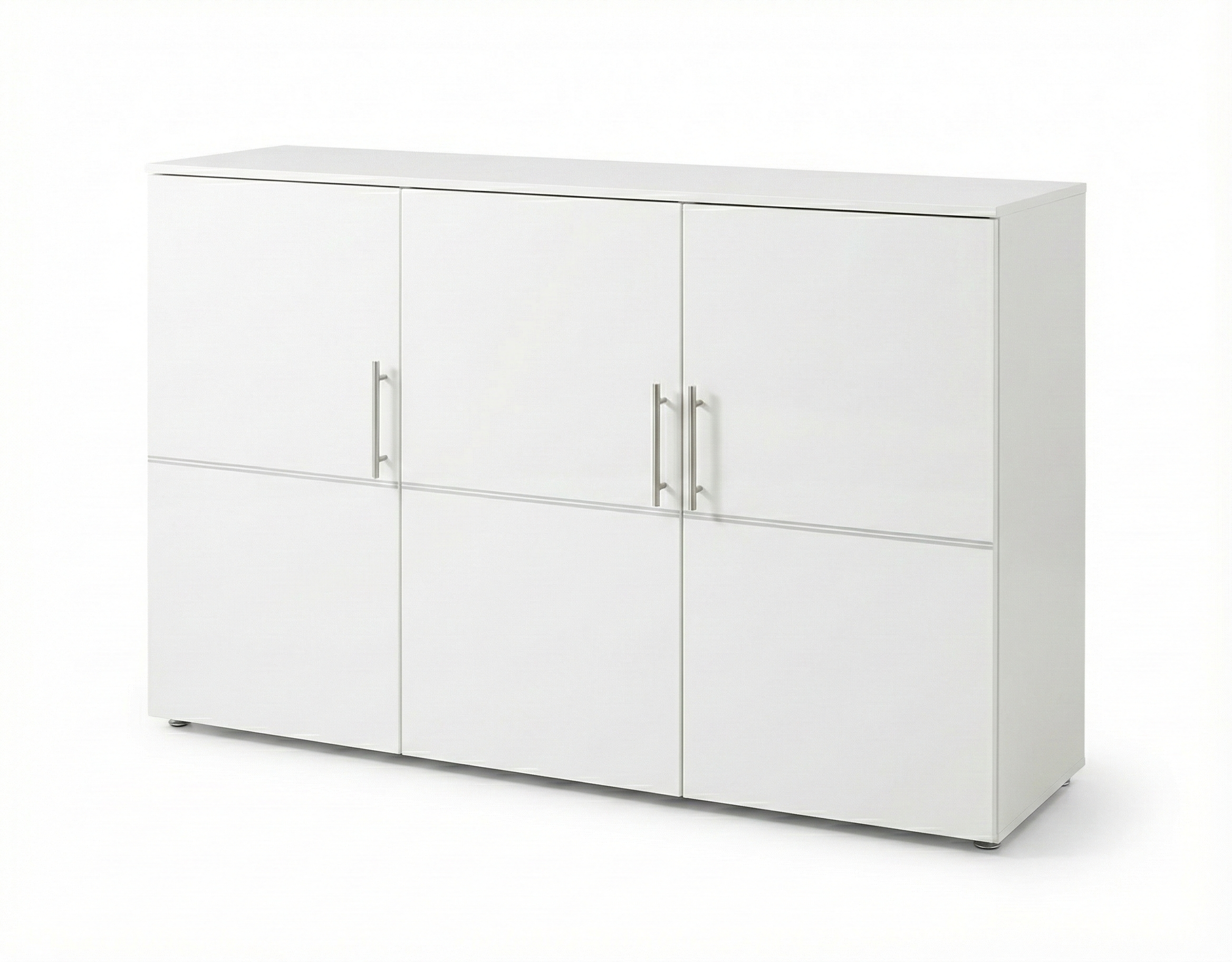 The Punto chest of drawers in white finish SP-PUN-3-36/723/17/3-BI offers spacious storage space to help keep your home tidy. Behind the four doors are capacious shelves that can easily accommodate clothes, documents, decorations or other essential items. Thanks to its dimensions (1320 mm wide, 910 mm high and 380 mm deep), the dresser is both practical and doesn't take up too much space.