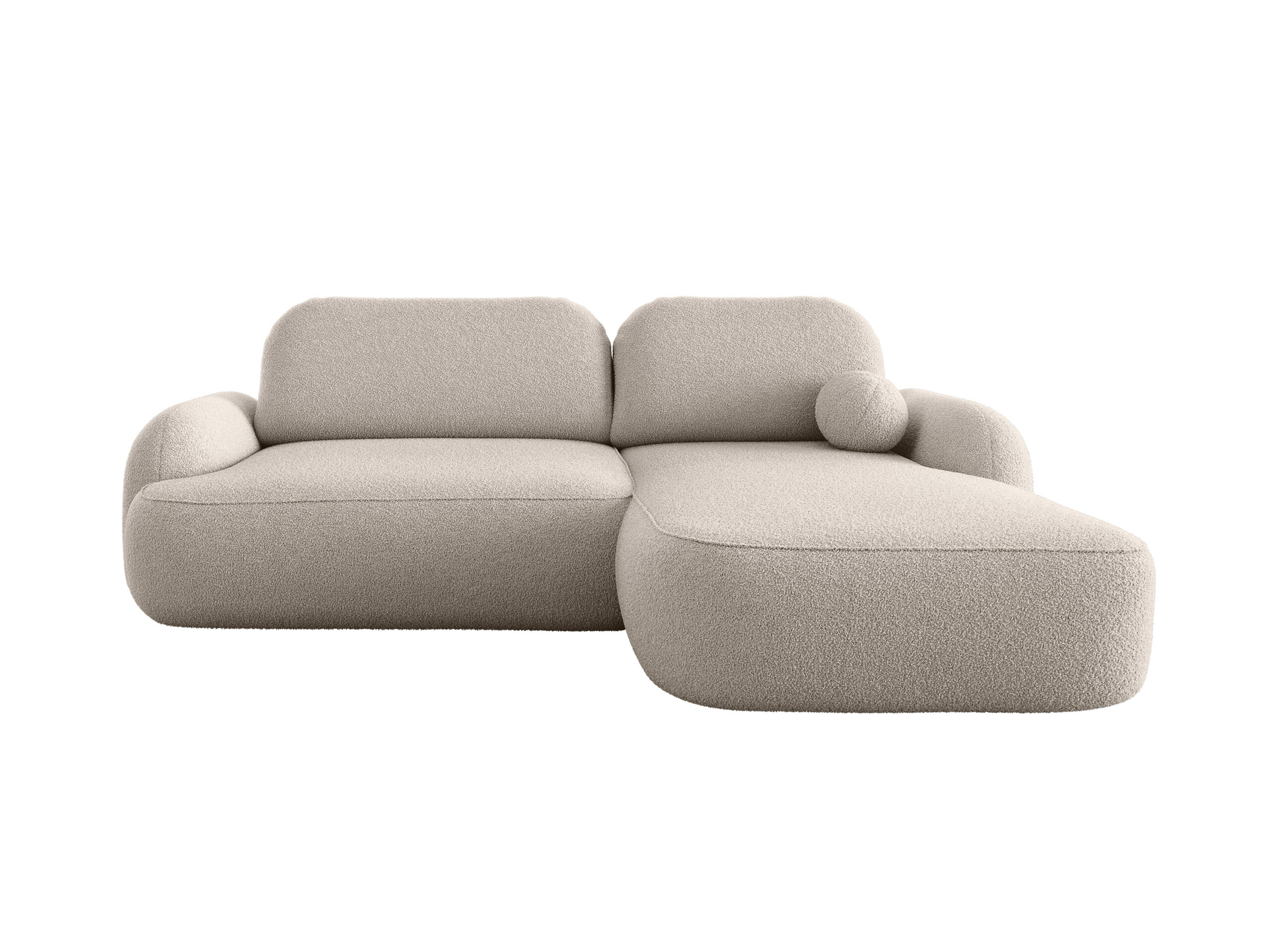 Narożnik Molly L to wyjątkowe połączenie minimalistycznej formy i niezwykłej przytulności. Jego zaokrąglone kształty i miękkie linie nadają mu lekkości, a jednocześnie sprawiają, że wnętrze staje się bardziej przyjazne i harmonijne. Wykonany z wysokiej jakości tkaniny typu bouclé, narożnik zachwyca nie tylko wyglądem, ale również wrażeniem miękkości i ciepła, jakie wprowadza do każdego pomieszczenia.