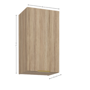 Została zaprojektowana z myślą o wygodnym przechowywaniu oraz estetycznym uzupełnieniu górnej zabudowy. Jej proporcje sprawiają, że idealnie wpasowuje się w ciąg szafek wiszących, tworząc spójną i uporządkowaną przestrzeń kuchenną.