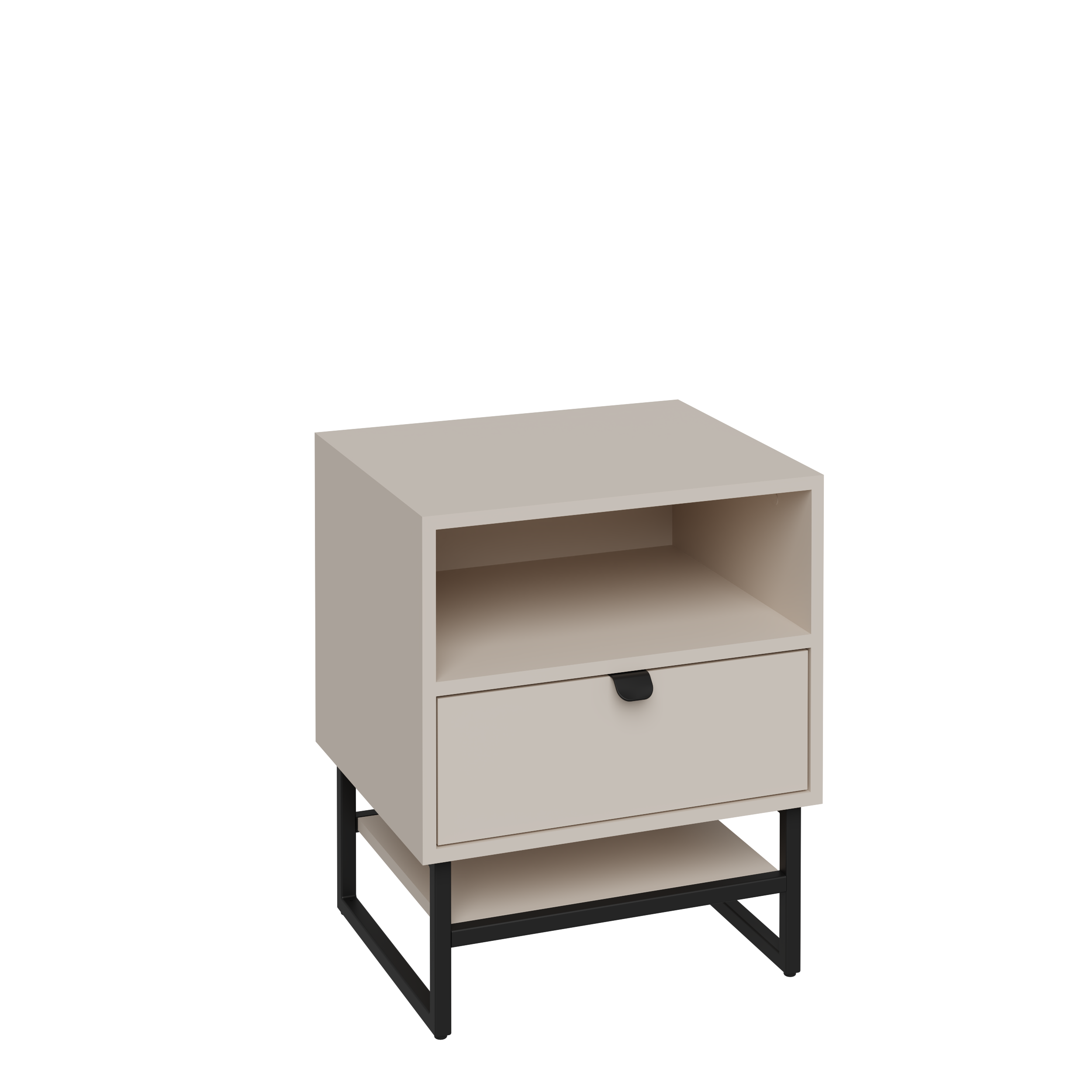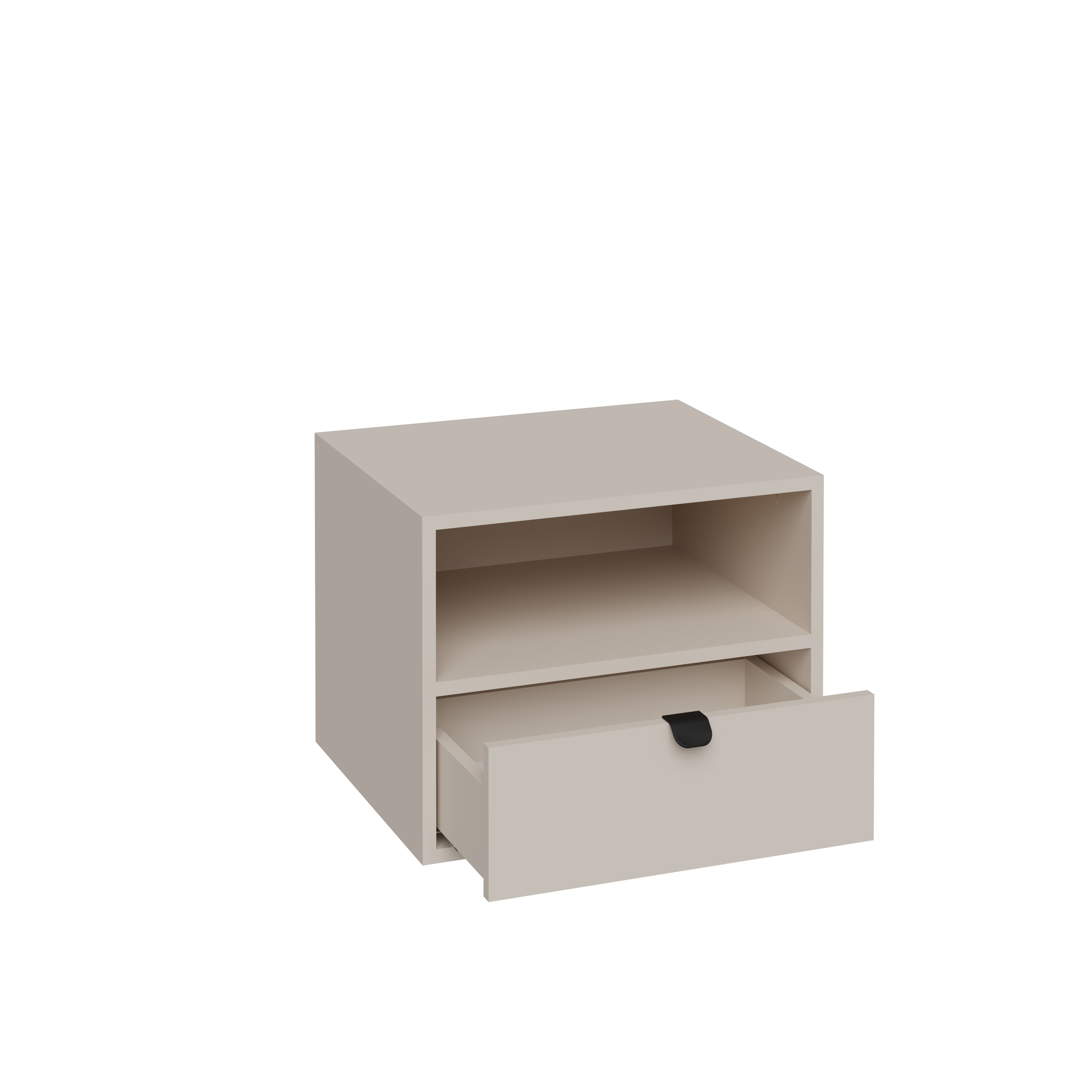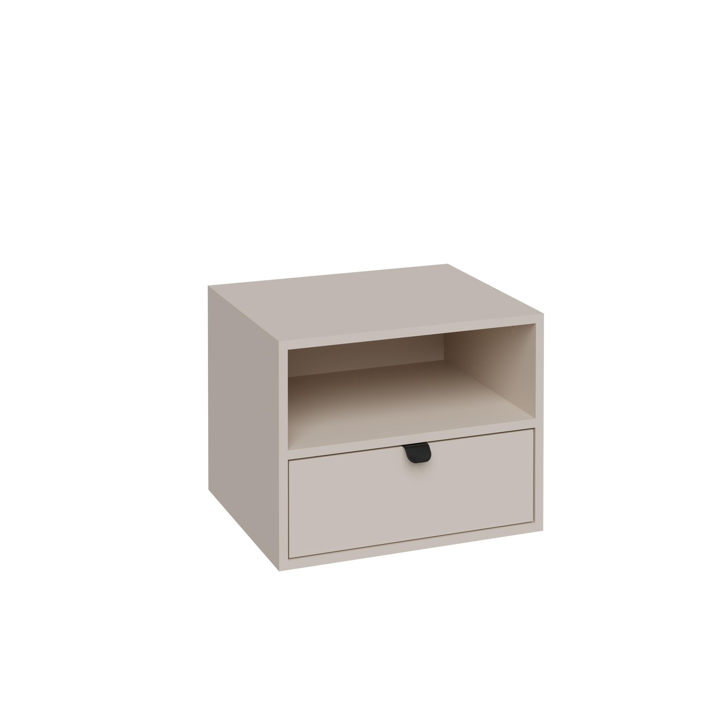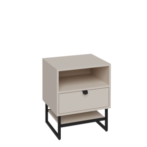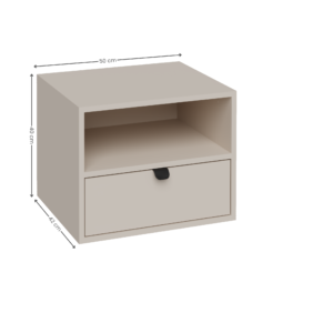 Dzięki prostej, geometrycznej bryle oraz subtelnemu odcieniowi kaszmiru szafka doskonale komponuje się z różnymi stylami wnętrz – od loftowych po skandynawskie. Wysokiej jakości płyta laminowana o matowym wykończeniu nadaje jej estetycznego wyglądu, a forma wisząca sprawia, że mebel prezentuje się lekko i nowocześnie, jednocześnie ułatwiając utrzymanie czystości w przestrzeni przy łóżku.