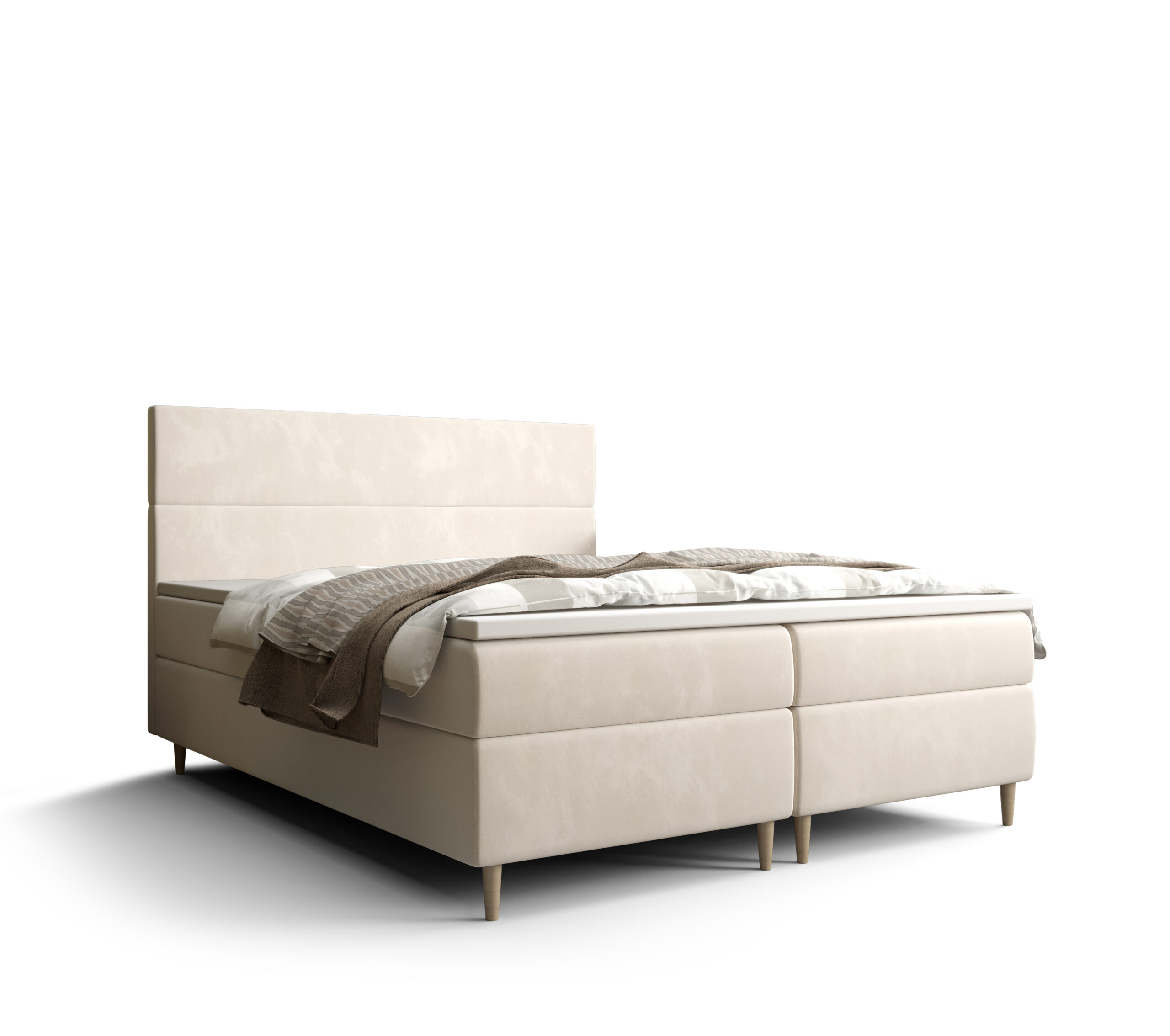 Łóżko kontynentalne Flo Comfort to idealne połączenie elegancji, wygody i funkcjonalności, które sprawia, że każda sypialnia nabiera wyjątkowego charakteru. Jego minimalistyczna, ale stylowa forma podkreślona jest wysokim, tapicerowanym wezgłowiem, które nie tylko dodaje wnętrzu nowoczesnej klasy, ale również zapewnia komfortowe oparcie podczas czytania czy oglądania telewizji. Jasna, neutralna kolorystyka tapicerki nadaje łóżku lekkości i subtelnej elegancji, dzięki czemu doskonale komponuje się zarówno z aranżacjami utrzymanymi w stonowanych barwach, jak i bardziej odważnymi zestawieniami kolorystycznymi.