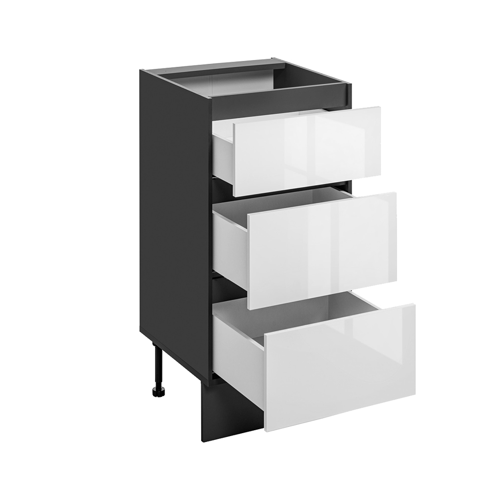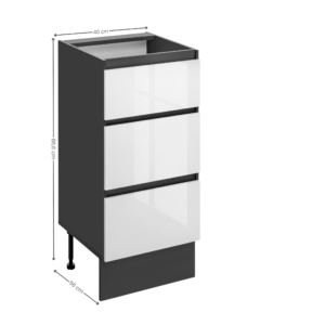 Szafka kuchenna 40 cm z 3 szufladami i frontami w wysokim połysku to wygodne i funkcjonalne rozwiązanie do codziennej organizacji kuchni.